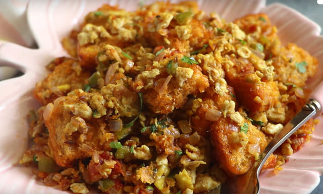 முட்டை உதிரியாக வந்ததும் அதில் பிரெட் துண்டுகளை சேர்த்து 2 நிமிடம் நன்கு டோஸ்ட் செய்து இறக்கினால், பிரெட் முட்டை மசாலா ரெடி!!!