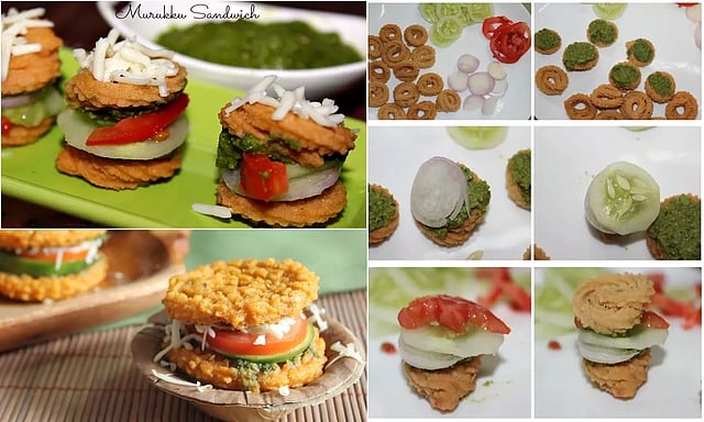 இந்த அடுக்கின் மீது சிறிதளவு சட்னியை வைத்து மற்றொரு முறுக்கைக் கொண்டு மூடவும். பிறகு அதன் மேற்பகுதியில் சீஸ் துருவலை தாராளமாகத் தூவவும்.