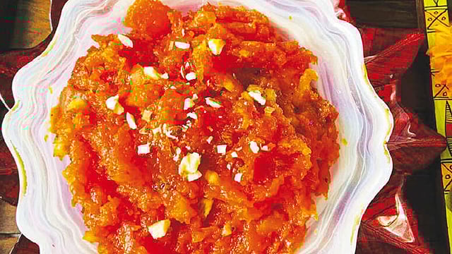 பரிமாறும் கண்ணாடி கப்பின் அடியில் நறுக்கிய கொய்யாப் பழத் துண்டுகளைச் சேர்த்து, அதன் மேல் வெந்த அல்வாவை இட்டு, மேலே ஜெல்லி மிட்டாய்களால் அலங்கரிக்கவும்.