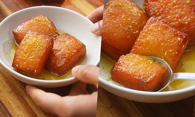அதாவது குலோப்ஜாமூன் செய்வதற்கு பாகு காய்ச்சுவதுபோல் செய்ய வேண்டும். பாகு பதம் வந்தவுடன். நாம் ஏற்கனவே செய்து வைத்துள்ள பால் கேக்குகள் மீது ஊற்றி புரட்டி எடுத்தால் சுவையான மில்க் கேக் தயார்.