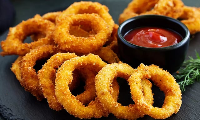 மொறுமொறு ஆனியன் ரிங்சுடன், ஆனியன் மயோன்னஸ் டிப் சேர்த்து பரிமாறலாம்.
