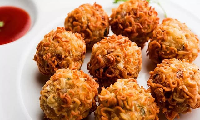 நூடுல்ஸ் ஆறிய பிறகு அதில் நறுக்கிய வெங்காயம், முட்டைக்கோஸ், குடைமிளகாய், பச்சை கொத்தமல்லி, மிளகாய் தூள், ரவை, பூண்டு விழுது, சீஸ் மற்றும் உப்பு சேர்த்து நன்கு கலக்கவும்.