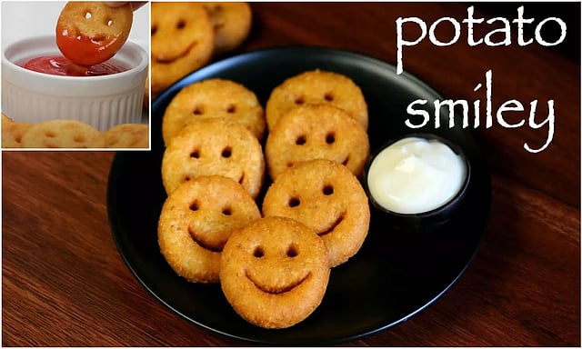கடாயில் எண்ணெய் ஊற்றி மிதமான சூட்டில் வைத்து ஸ்மைலிகளை போட்டு பொரித்தெடுத்து டொமேட்டோ கெட்சப் உடன் சாப்பிடவும்.
