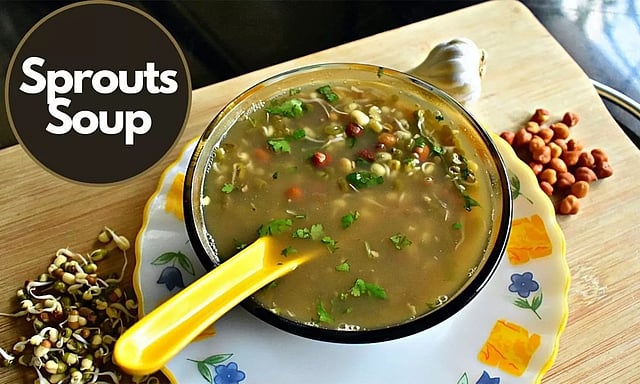 மேலே மிளகுத்தூள், தனியாக எடுத்து வைத்த பயறு சேர்த்து கலந்து பருகலாம்.