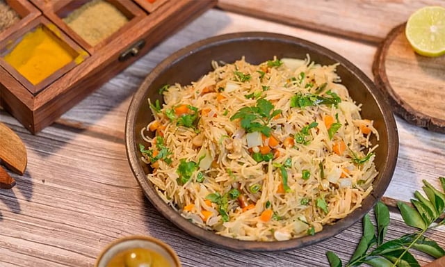 இதில் 1 சிட்டிகை உப்பு, மஞ்சள் தூள், 1 டீஸ்பூன் எண்ணெய், சேமியாவை சேர்த்து முக்கால் பதம் வெந்ததும் வடிகட்டி, குளிர்ந்த நீரில் இரண்டு முறை அலசி தண்ணீரை வடிய விடவும்.