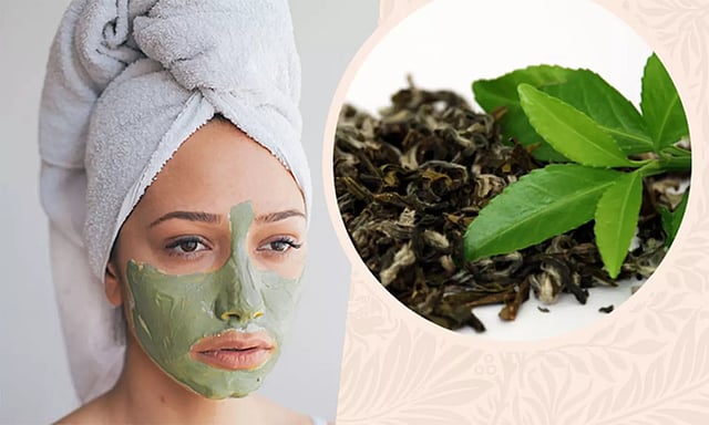 ஃபேஸ் பேக்குகளில் கிரீன் டீயை பயன்படுத்தும் போது உங்கள் சருமத்தை ஒளிரச் செய்து பளபளக்கச் செய்கிறது. கிரீன் டீ சருமத்தில் ஆரோக்கியமான செல்களை உருவாக்குகிறது. இதனால் எளிதில் அல்லது இளம் வயதில் ஏற்படும் வயதான தோற்றத்தினை தடுக்கிறது. கிரீன் டீயில் டானின்கள் மற்றும் ஆக்ஸிஜனேற்றங்கள் உள்ளதால் கண்களுக்குக் கீழ் ஏற்படும் கரு வளையங்கள் மற்றும் கண்களைச் சுற்றியுள்ள வீக்கத்தைக் குறைக்க உதவுகின்றன. கிரீன் டீயில் இருக்கும் பாக்டீரியா எதிர்ப்பு பண்புகள் முகப்பருவைக் குறைத்து வடுக்களைத் தடுக்கின்றன. கிரீன் டீ பயன்படுத்தி ஃபேஸ் பேக் போடும் போது சருமத்தில் இருக்கும் சிறு சிறு துளைகளைச் சரி செய்கிறது.