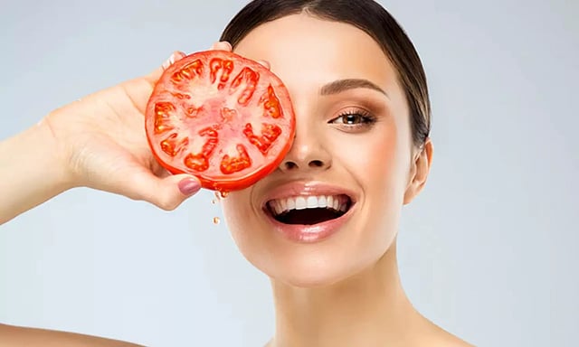 சமையலுக்கு மட்டுமின்றி, சருமத்திற்கும் பயன்படுகிறது தக்காளி. உங்களின் செயற்கை அழகு சாதனப் பொருட்களை தள்ளிவைத்துவிட்டு தக்காளியை போட்டாலே போதும். சரும அழகை மெருகூட்டலாம். தக்காளி சருமத்திற்கு எப்படி நன்மை பயக்கிறது என்பது குறித்து பார்க்கலாம்.