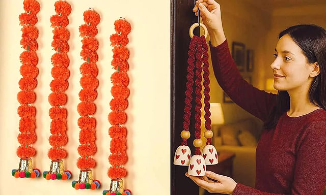வீட்டின் நுழைவாயிலை புனிதமாகவும், நல்லவிதமாகவும் உணர வைப்பதில் பித்தளை மணிகளுக்கு தனி இடம் உண்டு. ஒரு கனமான பித்தளை தோரணம் அல்லது சட்டகத்தில் தொங்கும் கோவில் பாணி மணிகளின் சரம், காற்று வீசும்போது அசைந்து மென்மையான ஓசையை ஏற்படுத்தி வீட்டை ஓர் இனிய சரணாலயம் போல உணரவைக்கும். அடர்ந்த நிறங்கள் கொண்ட மரக் கதவுகளில் பித்தளை ஒளிர்ந்து, விலை உயர்ந்ததாக தோன்றச் செய்யும்.