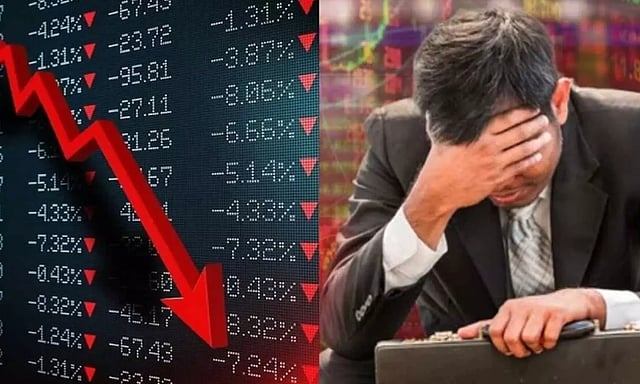 மும்பை பங்குச் சந்தை குறியீட்டு எண் செக்செக்ஸ் கடந்த வார வர்த்தக முடிவில் 75,364.69 புள்ளிகளில் நிறைவடைந்தது. இன்று மதியம் 1 மணியளவில் சுமார் 3200 புள்ளிகள் சரிந்து 72,133 புள்ளிகளில் வர்த்தகம் ஆனது.