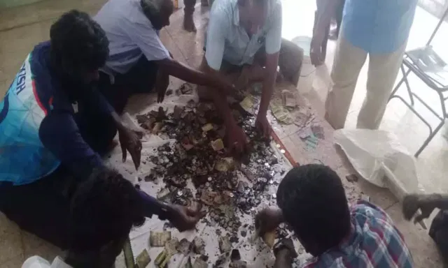 அதில் எரிந்த நிலையில் இருந்த ரூபாய் நோட்டுகள் மற்றும் நல்ல நிலையில் இருந்த ரூபாய் நோட்டுகள் பிரிக்கப்பட்டது. மேலும், நாணயங்களும் தனியாக பிரித்தெடுக்கப்பட்டது. ரூ.50 ஆயிரம் மதிப்புள்ள நோட்டுகள் எரிந்து போயிருந்தது. மேலும், நல்ல நிலையில் இருந்த 7 ஆயிரத்து 500 ரூபாய் பணம் கோவிலின் வங்கி கணக்கில் செலுத்தப்பட்டது. கோவில் உண்டியலுக்குள் தீ வைத்து பக்தர்களின் காணிக்கைகளை எரித்த மர்மநபர்களை கிளியனூர் போலீசார் தனிப்படை அமைத்து தேடி வருகின்றனர்.