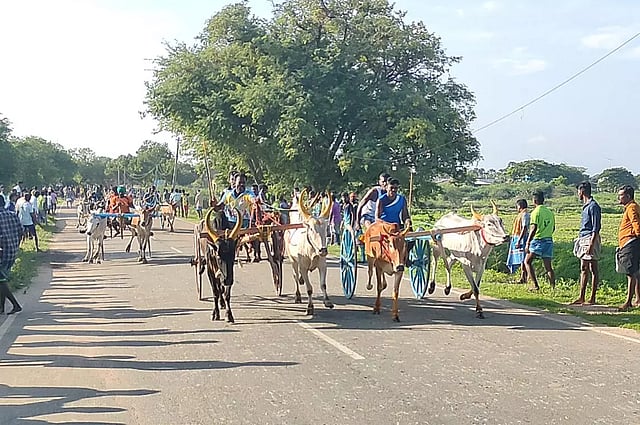 விளாத்திகுளம் அருகே உள்ள பூசனூர் கிராமத்தில் தேவர் ஜெயந்தி விழாவை முன்னிட்டு மாபெரும் மாட்டுவண்டி எல்கை பந்தயம் நடைபெற்றது.