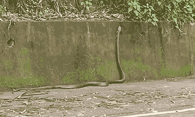 கூடலூர் வனப்பகுதியில் இருந்து காட்டு யானைகள் உள்ளிட்ட வனவிலங்குகள் ஊருக்குள் அடிக்கடி வருகிறது. நேற்று முன்தினம் இரவு கூடலூரில் இருந்து ஊட்டி செல்லும் தேசிய நெடுஞ்சாலையில் பல இடங்களில் காட்டு யானைகள் முகாமிட்டு இருந்தது. இதனால் வாகன ஓட்டிகள், சுற்றுலா பயணிகள் அச்சத்துடன் சென்றனர். இந்தநிலையில் கூடலூர் ஊசிமலை அருகே சாலையோரம் 12 அடி நீளம் உள்ள ராஜநாகம் தென்பட்டது. தொடர்ந்து சாலையின் மறுபுறம் செல்ல முயன்றது. ஆனால் தடுப்பு சுவர்கள் உயரமாக இருந்ததால், ராஜநாகத்தால் உடனடியாக அங்கிருந்து செல்ல முடியவில்லை. இதனால் ராஜநாகம் பல கட்ட முயற்சிக்குப் பிறகு சாலையோர புதர்கள் வழியாக வனத்துக்குள் சென்றது. இதனிடையே சாலையோரம் ராஜநாகம் காணப்பட்டதால், சுற்றுலாப் பயணிகள், வாகன ஓட்டிகள் அச்சமடைந்தனர். இதுகுறித்து வனத்துறையினர் கூறும்போது, வனவிலங்குகள் சாலையோரம் தென்பட்டால் அதற்கு இடையூறு செய்யக்கூடாது. தானாகவே வனத்துக்குள் சென்று விடும் என்றனர்.
