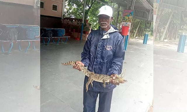 இந்த குட்டிக்கு 6 மாதம் வயது என தெரிவித்தனர். முதலை குட்டியை பாதுகாப்பாக அடர்ந்த வனப் பகுதியில் கொண்டு சென்று விட்டனர்.