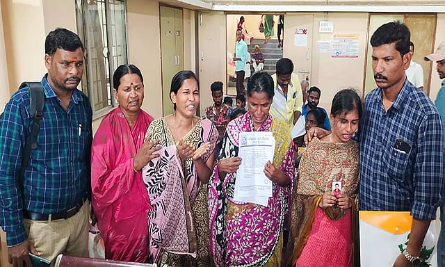 கடலூர் கலெக்டர் அலுவலகத்தில் இன்று (திங்கட்கிழமை ) மக்கள் குறை கேட்பு கூட்டம் நடைபெற்று வருகின்றது. இதில் கடலூர் மாவட்டத்தில் இருந்து ஏராளமான பொது மக்கள் தங்கள் கோரிக்கை கள் தொடர்பாக மனு அளிக்க நேரில் வந்தனர். இந்த நிலையில் புவனகிரி வட்டம் புதுப்பேட்டையை சேர்ந்த இந்திரா (வயது 48). இவரது 2 மகள்கள், உறவி னர்கள் மற்றும் மீனவம் காப்போம் மக்கள் இயக்கம் நிர்வாகி செந்தாமரை செல்வம் ஆகியோர் நேரில் வந்து கோரிக்கை மனு அளித்தனர்.