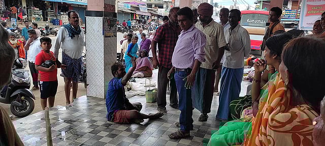 பின்னர் அங்கு நின்று இருந்த பெண்ணிடம் தகராறு செய்தார். இதை பார்த்த வயதான மூதாட்டி ஒருவர் குச்சியை எடுத்து அவரை விரட்டினார். ஆனால் போதையில் தள்ளாடியபடியே இருந்தார்.
