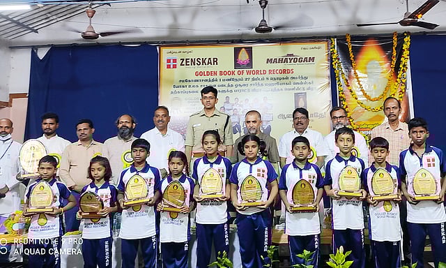 பின்னர் யோகா உலக சாதனை படைத்த ஓசூரை சேர்ந்த 10 மாணவ, மாணவிகளுக்கு கேடயங்கள் வழங்கி கவுரவிக்கப்பட்டனர்.