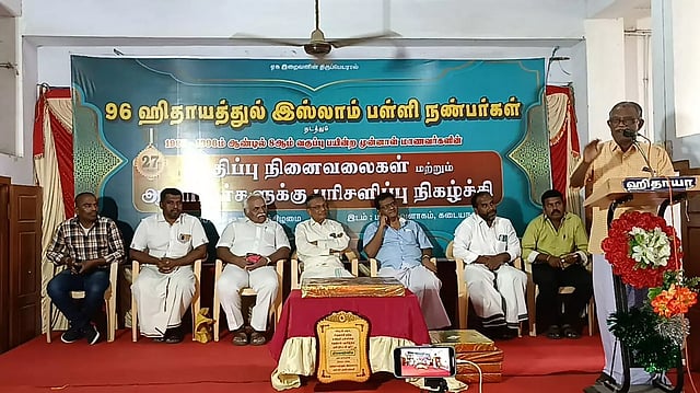 பள்ளியின் வளர்ச்சியில் முன்னாள் மாணவர்களின் பங்களிப்பு குறித்து வரலாற்று ஆசிரியர் இப்ராஹிம், டாக்டர் சஞ்சீவி, நடுநிலைப்பள்ளி தலைமை ஆசிரியர் அமீன், முன்னாள் ஆசிரியர் முகைதீன், அக்பர் அலி, முன்னாள் மாணவர் ஜமால் ஆகியோர் பேசினர். இதில் சுமார் 60 முன்னாள் மாணவ, மாணவிகள் கலந்து கொண்டனர். 25-க்கும் மேற்பட்ட ஓய்வு பெற்ற ஆசிரியர்களுக்கு பரிசு, கேடயம் வழங்கப்பட்டது. ஏற்பாடுகளை முன்னாள் மாணவர்கள் செய்திருந்தனர். நிகழ்ச்சியில் முன்னாள் மாணவர்கள் பைசல், உபைதுல்லா, சாகுல், மணிகண்டன் உட்பட ஏராளமானோர் கலந்துகொண்டனர். முடிவில் இஸ்மாயில் நன்றி கூறினார்.