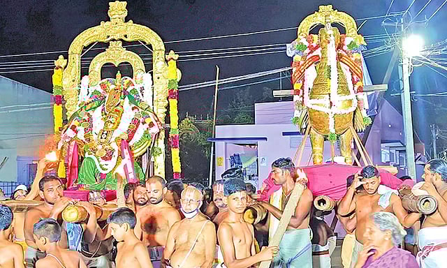 இந்த ஆண்டு சித்திரை பிரமோத்சவ திருவிழா கடந்த 23-ந் தேதி கொடியேற்றத்துடன் தொடங்கியது. 25-ந்தேதி எம்பெருமானார் எதிர் சேவை நிகழ்ச்சியும், நேற்று கருடோத்ஸவம் நிகழ்ச்சியும் நடைபெற்றது. கருட சேவை நிகழ்ச்சியில் உற்சவர் பொலிந்துநின்ற பிரான் கருட வாகனத்திலும், நம்மாழ்வார் அன்ன வாகனத்திலும் எழுந்தருளி மாடவீதிகளில் உலா சென்று பக்தர்களுக்கு காட்சி அளித்து அருள் பாலித்தார். வருகிற 1-ந் தேதி (திங்கள்கிழமை) தேர்த்திருவிழாவும், 2-ந்தேதி (செவ்வாய்கிழமை) தீர்த்தவாரியும் நடைபெறுகிறது.