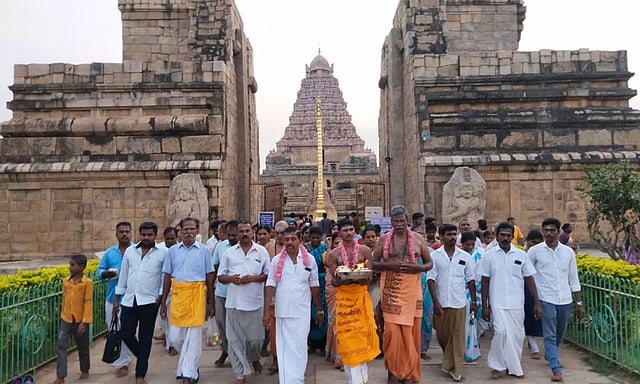 அரியலூர் மாவட்டம் ஜெயங்கொண்டம் அருகே உள்ள கங்கைகொண்ட சோழபுரம் ஸ்ரீ பிரகன்நாயகி சமேத ஸ்ரீ பிரகதீஸ்வரர் கோவிலில் பவுர்ணமி தினத்தையொட்டி கிரிவல பெருவிழா நடைபெற்றது. விழாவை முன்னிட்டு நேற்று மாலை ஸ்ரீகணக்க விநாயகர் ஆலயத்தில் மகா அபிஷேகம், தீபாராதனை நடைபெற்றது. தொடர்ந்து பெளர்ணமி கிரிவலம் நடைபெற்றது. கிரிவலம் கோவிலில் தொடங்கி வன்னியர்குழி, கணக்க வினாயகர் கோவில் வழியாக சென்று மீண்டும் பிரகதீஸ்வரர் கோவிலை வந்தடைந்தது. அதைதொடர்ந்து கோவிலில் அன்னதானம் நடைபெற்றது. விழாவில் சுற்று வட்டார கிராமமக்கள் மற்றும் சிவனடியார்கள் ஏராளமானோர் கலந்து கொண்டனர்.