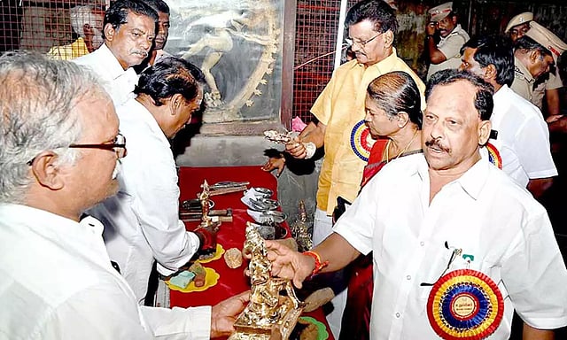 சுவாமிமலை பஞ்சலோக சிலைகள் தயாரிப்பு கூடத்தில் தமிழ்நாடு சட்டமன்ற பேரவை ஏடுகள் குழு தலைவர் கம்பம் ராமகிருஷ்ணன், தலைமை கொறடா கோவி. செழியன், ஏடுகள் குழு உறுப்பினர்கள் செல்வம் எம்.எல்.ஏ, பொன்னுசாமி எம்.எல்.ஏ, நல்லதம்பி எம்.எல்.ஏ, மாவட்ட துணை கலெக்டர் சுகபுத்ரா ஆகியோர் ஆய்வு செய்தனர்.