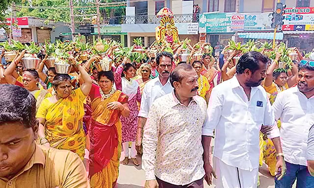 இதனை தொடர்ந்து காவிரி கரையில் இருந்து ஊர்வலமாக பச்சைக்காளி பவளக்காளி ஆட்டத்துடன் அம்பாள் விதி உலாவும், பெண்கள் பால்குடம் தலையில் சுமந்துக் கொன்டு அம்மன் சன்னதிக்கு வந்து தங்களது நேர்த்ததிக் கடனை செலுத்தினர். பின்னர் அம்மனுக்கு மகா அபிஷேகமும், அலங்கார அர்ச்சனை செய்து தீபாரத னையும் நடைபெற்றது.