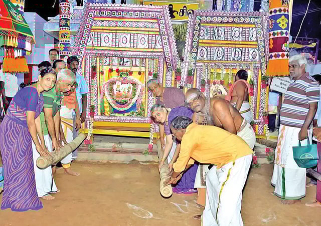 2-வது நாளான நேற்று காலை யாக பூஜையை தொடர்ந்து சுவாமி, அம்பாள் பூஞ்சப்பர பவனி நடந்தது. இரவில் 5 சப்பரங்களின் அணிவகுப்பு நடைபெற்றது. இதில் விநாயகர், சுப்பிரமணியர், சோமாஸ்கந்தர், சோமசுந்தரி அம்பாள், சண்டிகேஸ்வரர் எழுந்தருளல் நடந்தது. இந்த 5 சப்பரங்களின் பவனியை சாகுபுரம் டி.சி.டபிள்யூ. நிறுவனத்தின் மூத்த செயல் உதவி தலைவர் சீனிவாசன் தொடங்கி வைத்தார். முன்னதாக நந்தினி சீனிவாசன் முன்னிலையில், சாகுபுரம் மகளிர்