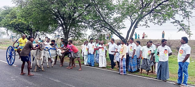 விளாத்திகுளம் அருகே உள்ள புளியங்குளத்தில் தேவர் ஜெயந்தியை முன்னிட்டு மாட்டு வண்டி எல்கை பந்தயம் நடைபெற்றது. இதில் நெல்லை, தென்காசி, விருதுநகர், தேனி உள்ளிட்ட பகுதிகளில் இருந்து 63-க்கும் மேற்பட்ட மாட்டு வண்டிகள் கலந்து கொண்டன. போட்டியானது சிறிய மாட்டு வண்டி, பூஞ்சிட்டு என 2 பிரிவுகளாக விளாத்திகுளம் - குளத்தூர் சாலையில் நடைபெற்றது. இதில் முதலாவதாக நடைபெற்ற சிறிய மாட்டு வண்டி பந்தயத்தை மார்க்கண்டேயன் எம்.எல்.ஏ. கொடியசைத்து தொடங்கி வைத்தார்.
