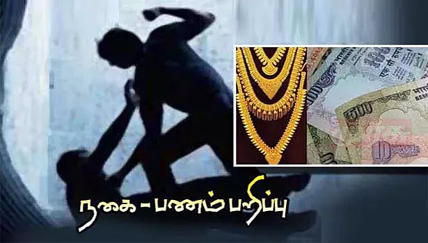 அப்போது அங்கு வந்த சில நபர்கள் அண்ணாதுரையை திடீரென வழிமறித்து, கத்தியை காட்டி மிரட்டல் விடுத்து, தாக்கி அவரிடமிருந்து 3 பவுன் செயின், ரூ.700 பணம் ஆகியவற்றை பறித்துக் கொண்டு அங்கிருந்து தப்பி ஓடி விட்டனர்.