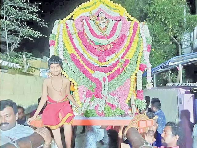 இரவில் சாம பூஜையை தொடர்ந்து அம்மனின் சிம்ம வாகனத்தில் சப்பர பவனி நடைபெற்றது. திரளான பக்தர்கள் பங்கேற்று தரிசனம் செய்தனர்.