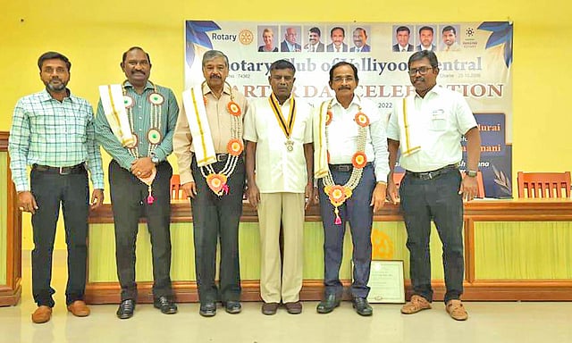 முன்னாள் மாவட்ட ஆளுநர் பட்டய செயலாளர் நவமணி இந்த சங்கத்தின் முன்னாள் தலைவர்களின் சிறப்பினையும் கூறி வாழ்த்துக்களை தெரி வித்தார். பட்டய தலைவர் எஸ்.என். தங்கத்துரை, பட்டய செயலர் முன்னாள் மாவட்ட ஆளுநர் நவமணி ஆகியோருக்கு சந்தன மாலை, பொன்னாடை அணிவித்தனர்.