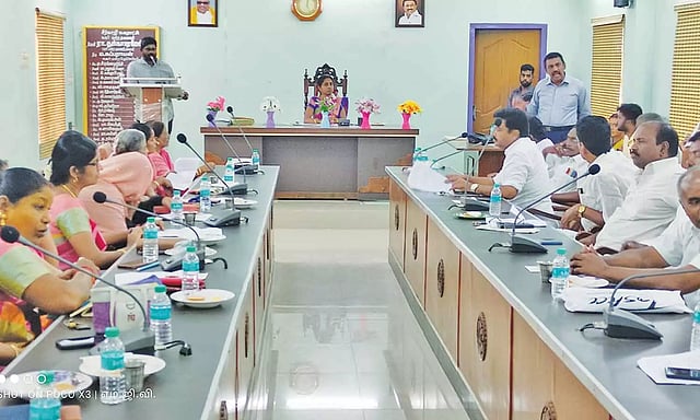 ஆணையர்(பொ) ஹேமலதா, பொறியாளர் சித்ரா, நகரமைப்புஆய்வாளர் மரகதம், மேலாளர் காதர்கான், துணை தலைவர் சுப்பராயன் முன்னிலை வகித்தனர்.