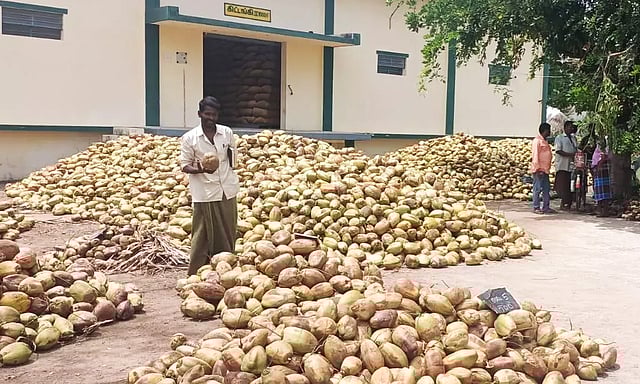 எழுமாத்தூர் ஒழுங்குமுறை விற்பனைக் கூடத்தில் தேங்காய் ஏலம் நடைபெற்றது. ஏலத்தில் சுற்றுவட்டார பகுதிகளை சேர்ந்த விவசாயிகள் 10,330 தேங்காய்களை விற்பனைக்கு கொண்டு வந்தனர்.