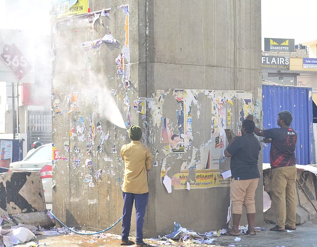 இந்த நிலையில் மாநகராட்சி சுவர் விளம்பரங்களை தடுக்க பல்வேறு நடவடிக்கைகளை எடுத்து வருகிறது. முதல் கட்டமாக காந்திபுரத்தில் உயர்மட்ட மேம்பால சுவரொட்டிகள் அகற்றப்பட்டு தமிழர்களின் பாரம்பரியத்தை எடுத்துரைக்கும் வகையில் ஓவியங்கள் வரையப்பட்டு வருகிறது.
