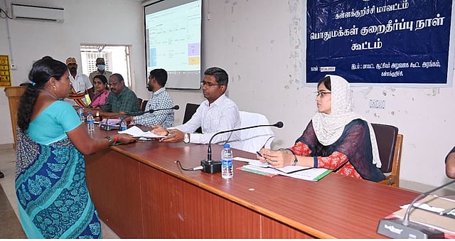 கள்ளக்குறிச்சி மாவட்ட கலெக்டர் அலுவலக கூட்டரங்கில் மக்கள் குறைதீர்க்கும் நாள் கூட்டம் நடைபெற்றது. கூட்டத்திற்கு மாவட்ட கலெக்டர் ஸ்ரீதர் தலைமை தாங்கினார். இதில் முதியோர் உதவித்தொகை, வீட்டுமனை பட்டாக் கோருதல், விதவை உதவித்தொகை, சாலை வசதி, ஆதரவற்றோர் உதவித்தொகை, பட்டா மாறுதல், தொழில் தொடங்க கடனுதவி கோருதல், ஏரி, குளம் தூர் வாருதல், பிரதம மந்திரி வீடு கட்டும் திட்டம், வேளாண் உழவர் நலத்துறை சார்ந்த திட்டம் உள்ளிட்ட பல்வேறு கோரிக்கைள் அடங்கிய 484 மனுக்களை பொதுமக்கள் மாவட்ட கலெக்டரிடம் வழங்கினர்.