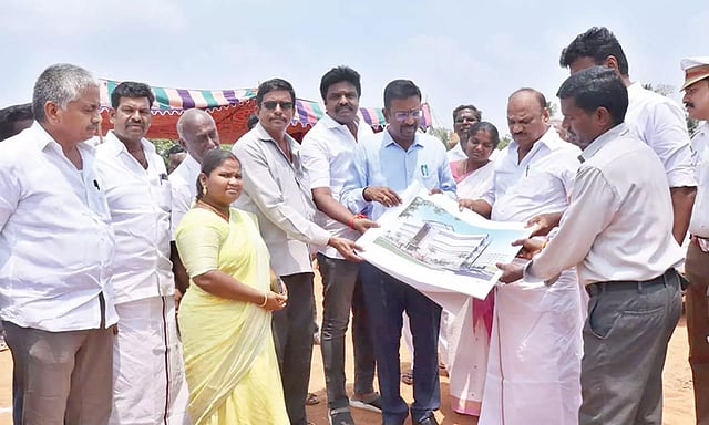 மினி டைடல் பூங்காவின் கட்டுமான பணிகள் வரைபடத்தை பார்வையிட்டனர். தஞ்சை புதிய பஸ் நிலையம் அருகே மேல வஸ்தாசாவடியில் அமைய உள்ள