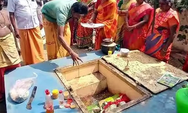 அந்த வகையில், திருப்பூர் மாவட்டம் பல்லடத்தை சேர்ந்த முழுக்காதான் குலத்தை சேர்ந்தவர்கள், குழி அமைத்து அதில் அம்மன் சாமியை வைத்து மூடி அம்மன் என்று வழிபாடு செய்து வருகின்றனர்.