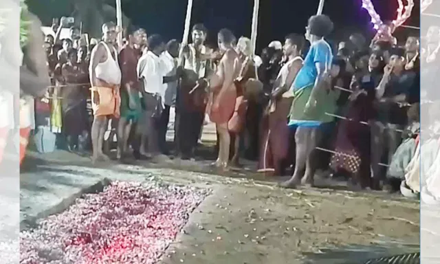 முன்னதாக அம்மன் மணி மண்டபத்திலிருந்து சிறப்பு மலர் அலங்காரத்துடன் மின் விளக்குகளால் அலங்க ரிக்கப்பட்ட வாக னத்தில் எழுந்தருளினார். அதனைத் தொடர்ந்து காப்பு கட்டி விரதமிருந்த 100-க்கும் மேற்பட்ட பக்தர்கள் நீண்ட வரிசையில் காத்திருந்து தீ மிதித்து நேர்த்திக்கடன் செலுத்தினர்.