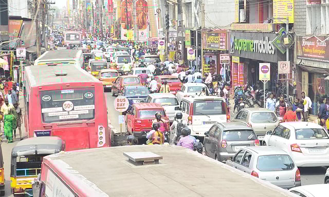 ஒப்பணக்கார வீதி, கிராஸ் கட் ரோடு, டவுன்ஹால், 100 அடி ரோடு பகுதிகளில் எங்கு பார்த்தாலும் மக்கள் கூட்டமாகவே உள்ளது. மக்கள் நடந்து செல்வதற்கு வசதியாக சாலையையொட்டி தடுப்புகளும் அமைக்கப்பட்டுள்ளது.