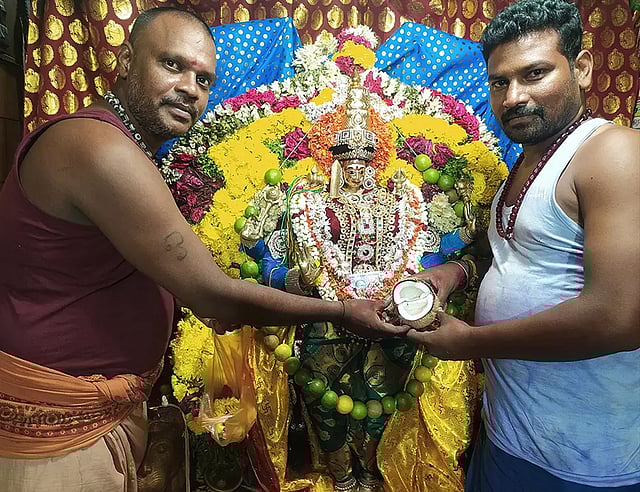நேற்று பெண் பக்தர் ஒருவர் உற்சவர் அம்மன் சன்னதியில் தேங்காயை கொடுத்தார். அதை பூசாரிகள் உடைக்கும் போது அதன் உட்புறம் இரண்டு மூடிகள் இருந்தது அங்கிருந்தவர்களை பக்திப் பரவசத்தில் ஆழ்த்தியது.