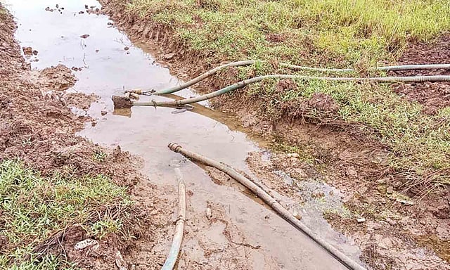 மேட்டூரில் இருந்து திறந்து விடப்பட்ட காவிரி நீர் கடைமடைக்கு போதிய அளவு கிடைக்காததாலும், அணையின் தண்ணீர் நிறுத்தப்பட்டதாலும், மாவட்டத்தில் பல்வேறு பகுதிகளில் விவசாயிகள் குளம், வாய்க்கால் போன்ற நீர் நிலைகளில் டீசல் மோட்டார் பம்பு செட்டு மூலம் தண்ணீர் இறைத்து பயிர்களை பாதுகாத்து வருகின்றனர்.