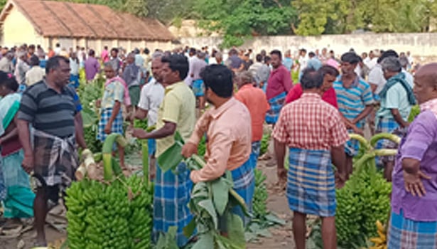 அதேபோல் வியா பாரிகள் வாழைத் தோப்பு களிலேயே நேரடியாக வாங்கி செல்கின்றனர். கடந்த வாரம் நடைபெற்ற பூவன் வாழைத்தார் அதிகபட்சமாக தார் ஒன்று ரூ.600-க்கும், ரஸ்தாலி வாழைத்தார் அதிகபட்சமாக தார் ஒன்று ரூ.450-க்கும், பச்சநாடன் வாழைத்தார் அதிகபட்சமாக தார் ஒன்று ரூ.300-க்கும், கற்பூரவள்ளி வாழைத்தார் தார் ஒன்று ரூ.400-க்கும் மொந்தன் வாழைத்தார் ஒன்று ரூ.550க்கும் வாங்கிச் சென்றனர். நேற்று பூவன் வாழைத்தார் ஒன்று ரூ.250-க்கும், ரஸ்தாலி வாழைத்தார் தார் ஒன்று ரூ.350-க்கும், பச்சநாடன் வாழைத்தார் தார் ஒன்று ரூ.200-க்கும், கற்பூரவள்ளி வாழைத்தார் தார் ஒன்று ரூ.300-க்கும், மொந்தன் வாழைத்தார் ஒன்று ரூ.400க்கும் வாங்கிச் சென்றனர்.