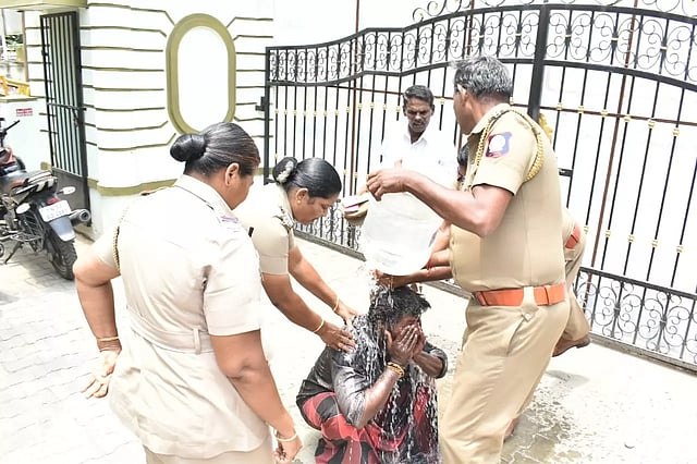 ஈரோடு கலெக்டர் அலுவலகத்தில் இன்று மக்கள் குறை தீர்க்கும் நாள் கூட்டம் நடைபெற்றது. அப்போது ஈரோடு மாவட்டம் அரச்சலூர் ஜேகே நகரை சேர்த்த திருஷ்டி பொம்மை வியாபாரி குமார்(36). தனது மனைவி மங்கம்மாள் மற்றும் தனது மகன், மகளுடன் வந்தார். அப்போது திடீரென குமார் கலெக்டர் அலுவலக நுழைவாயில் முன்பு தண்ணீர் கேனில் தான் மறைத்து வைத்திருந்த பெட்ரோலை எடுத்து திடீரென உடலில் ஊற்றி தீக்குளிக்க முயன்றார்.