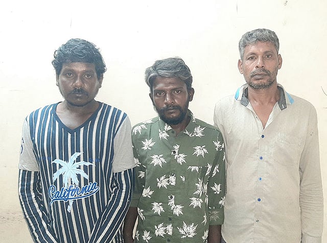 இதனைத் தொடர்ந்து கதிர்வேலை திருவாச்சி கிராம நிர்வாக அலுவலர் பெருந்துறை போலீசில் ஒப்படைத்தார். பெருந்துறை போலீசார் கதிர்வேலுவிடம் மேற்கொண்டு விசாரணை செய்ததில் அவருடன் கொலை செய்ய உதவியாக இருந்த கோபி என்கிற பால முருகன், ஆறுமுகம் ஆகியோரை பெருந்துறை காஞ்சிகோவில் ரோடு, கருமாண்டிசெல்லி பாளையம் பகுதியில் உள்ள சித்தம்பட்டி குளம் அருகே சுற்றி வளைத்து பிடித்து கைது செய்தனர்.