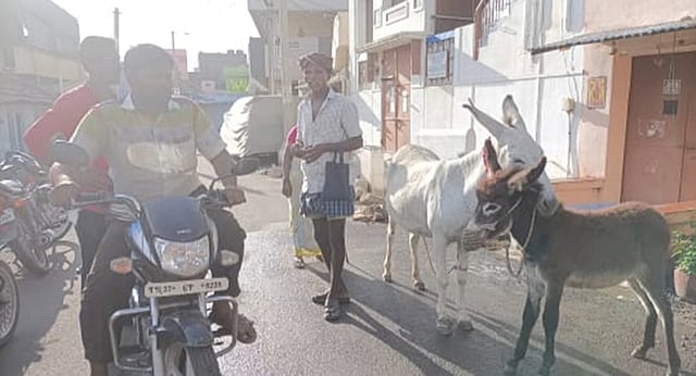 நாமக்கல் மாவட்டம் பள்ளிப்பாளையத்தைச் சேர்ந்த முத்துசாமி (55) என்பவர் கழுதையை ஓட்டி வந்து கழுதை பால் வியாபாரத்தில் ஈடுபட்டு வருகிறார். கழுதை பால் சளி, இருமல், மஞ்சள் காமாலைக்கு சிறந்த மருந்தாக இருப்பதால் மக்கள் போட்டி போட்டு வாங்கி செல்கின்றனர்.