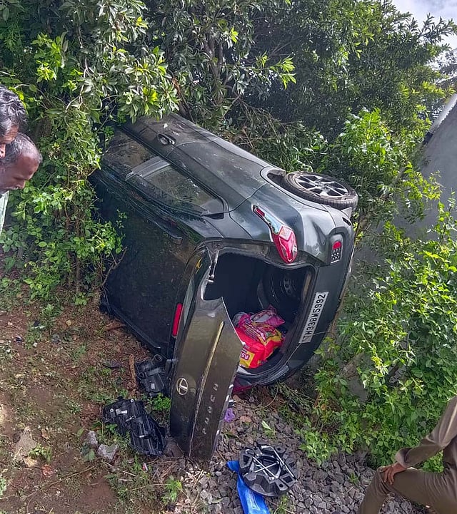 கொடுமுடி அருகே உள்ள சோளகாளிபாளையம் பகுதியில் கார் சென்று கொண்டிருந்த போது திடீரென கார் கட்டுப்பாட்டை இழந்து தாறுமாறாக ஓடி அந்த பகுதியில் உள்ள ஒரு சுவற்றில் மோதி தலைகுப்புற கவிழ்ந்தது.