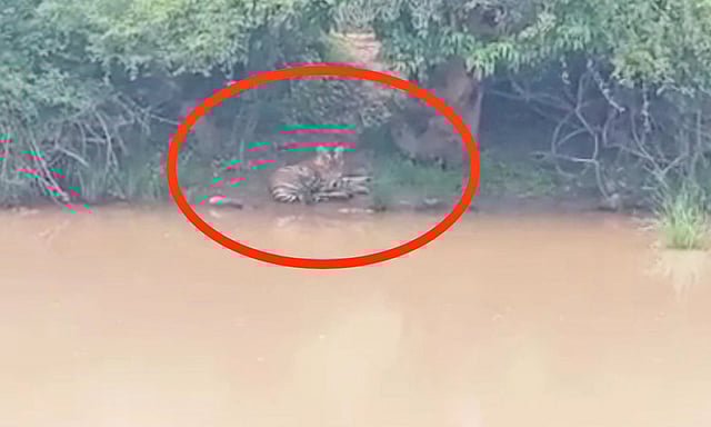 இந்த நிலையில் ஜீர்கள்ளி வனச்சரகத்துக்கு உட்பட்ட பெளத்தூர் அருகே உள்ள ஒரு குளத்தின் அருகே புலி ஒன்று ஹாயாக படுத்திருந்தது. இதை குளத்தின் மறுபக்கம் இருந்து அப்பகுதியை சேர்ந்த சிலர் வீடியோ மற்றும் புகைப்படம் எடுத்து சமூக வலைத்தளங்களில் பதிவிட்டுள்ளனர். பின்னர் சிறிது நேரம் கழித்து புலி அடர்ந்த வனப்பகுதிக்குள் சென்று மறைந்தது.