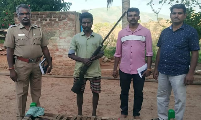 ஈரோடு மாவட்டம் சத்தியமங்கலம் அடுத்துள்ள கடம்பூர் அடுத்த அத்தியூர் கேர்மாளம் பகுதியை சேர்ந்த பெரியசாமி (49) என்பவர் வனவிலங்குகளை வேட்டையாட நாட்டு துப்பாக்கியை பதுக்கி வைத்து பயன்படுத்தி வரு வதாக கடம்பூர் தனிப்பிரிவு போலீசாருக்கு தகவல் கிடைத்தது.