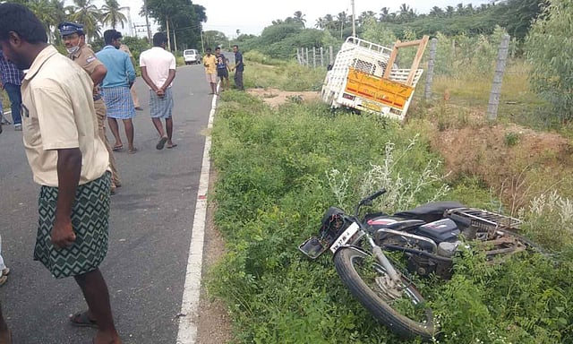 இவர் கோபிசெட்டிபாளையம் அடுத்த கெட்டிசெவியூரில் இருந்து மோட்டார் சைக்கிளில் நம்பியூர் ரோட்டில் சென்று கொண்டு இருந்தார். அப்போது அந்த வழியாக வந்த ஒரு சரக்கு வேன் மோட்டார் சைக்கிள் மீது மோதியது.
