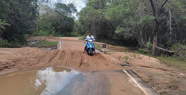 தற்போது வெள்ளம் வடிந்த பிறகு சாலையில் மணல் குவியல் குவியலாக குவிந்துள்ளது. இதனால் அவ்வழியில் செல்லும் வாகன ஓட்டிகள் சாலையை கடக்க முடியாமலும், கீழே விழுந்து அடிபடுவதும் நடந்து வருகிறது.