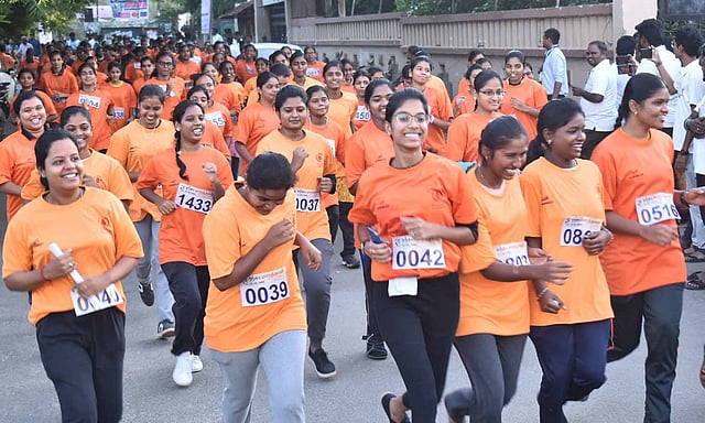 இந்த மராத்தான் போட்டிக்கு கல்லூரி செயலாளர் திருமூர்த்தி தலைமை தாங்கினார். இந்த மாரத்தானில் ஆண்களுக்கான போட்டியை மாவட்ட போலீஸ் சூப்பிரண்டு சசிமோகனும், பெண்களுக்கான போட்டியை திருமகன் ஈ.வெ.ரா எம்.எல்.ஏ. ஆகியோர் தொடங்கி வைத்தனர்.